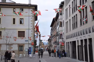 Un grupo de vecinos de Villava "inconformes" con la decisión trasladada desde la Delegación del Gobierno en Navarra al Consistorio de la localidad "de colocar las banderas que obliga la Ley de Símbolos" han colocado 'ikurriñas' a lo largo de la calle Mayor de Villava.