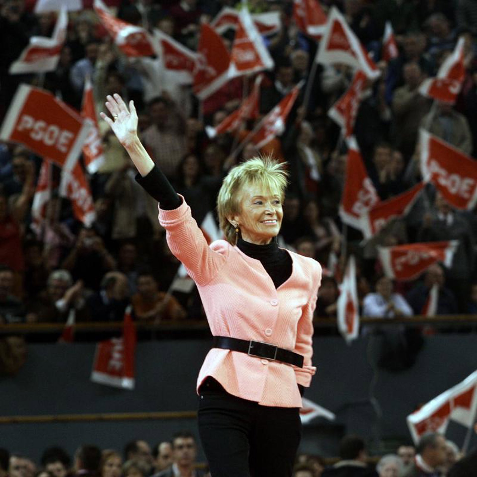 La candidata pronunció su discurso en un escenario colocado junto a las Torres de Serranos en un acto que reunió a militantes y simpatizantes, así como a diputados, concejales y alcaldes del PSPV, entre ellos el de Alaquàs, Jorge Alarte. También intervinieron el presidente de la Gestora del PSPV, Joan Lerma, la portavoz socialista en el Ayuntamiento de Valencia, Carmen Alborch, y el secretario general del PSPV en Valencia ciudad, Rafael Rubio. A la medianoche, los miembros de la candidatura descubrieron un cartel electoral que, con el lema 'Vota con todas tus fuerzas', sirvió de fondo para la intervención de De la Vega. Una actuación musical y la proyección de un vídeo precedieron los discursos.