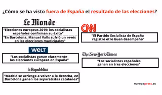 Algunos medios extranjeros han recogido en sus ediciones digitales el resultado de España en las elecciones locales, autonómicas y europeas. La posición predominante del PSOE o el cambio en Madrid y Barcelona han sido algunos de los temas recogidos por estos diarios.