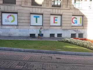 Cada una de las cristaleras del local exhibe un carácter, de colores llamativos, y el eslogan "Egin Herri" (Hacer pueblo), como forma de reivindicar la candidatura del histórico representante de la izquierda abertzale.