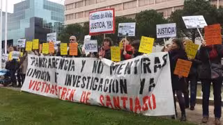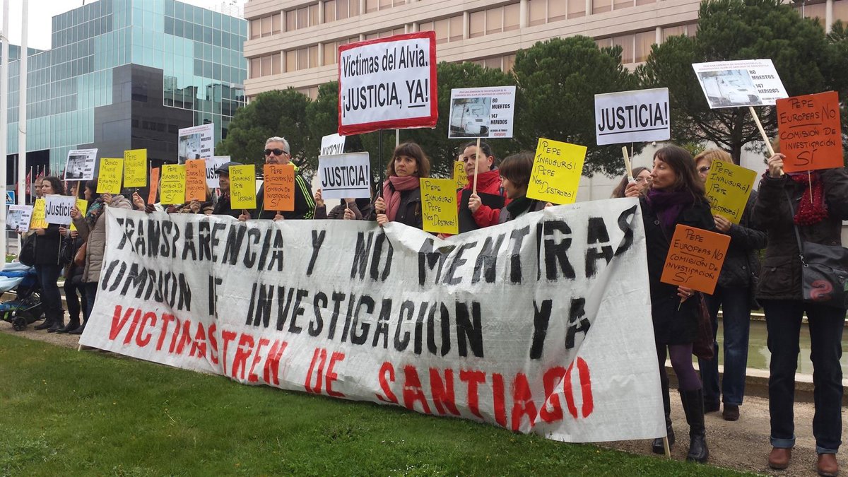Portando carteles en los que piden explicaciones acerca del accidente de tren ocurrido el pasado mes de julio en Santiago de Compostela, los manifestantes destacan que existen "80 gravísimas razones" por las que Blanco no debería concurrir a las europeas, que son "las 80 personas que ya no podrán votar nunca más porque perdieron la vida, entre otras cosas, por las mentiras y chapucera gestión del señor Blanco".
