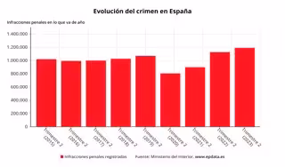 Por su parte, la cibercriminalidad marca 217.679 infracciones penales, el 18.3% del total, lo que representa un incremento del 19,7 por ciento sobre 2022, según el balance del Ministerio del Interior, consultado por Europa Press.