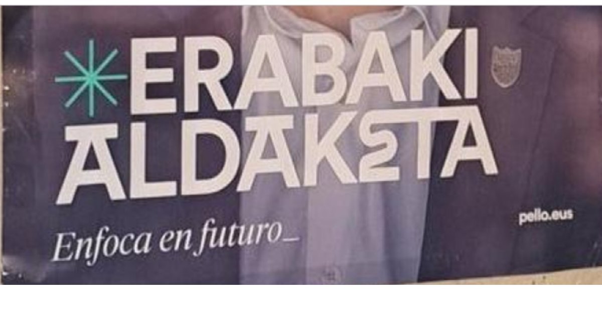 A esto, suma que la letra 'e' de la palabra 'aldaketa' "tiene cierta similitud al hacha y la serpiente del anagrama de ETA" y que todas las letras del cartel electoral están debidamente separadas por el mismo espacio a excepción de las letras 'E', 'T' y 'A' de la palabra 'aldaketa' que están unidas "formando claramente las siglas ETA".