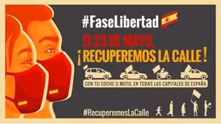 Con estética de contienda, en el cartel aparece la imagen de un hombre y una mujer con mascarillas adornadas con banderas de España. Vox anima a los ciudadanos a participar en esa protesta contra el Gobierno con el lema #FaseLibertad, aludiendo a las distintas fases previstas por el Ejecutivo para la desescalada.