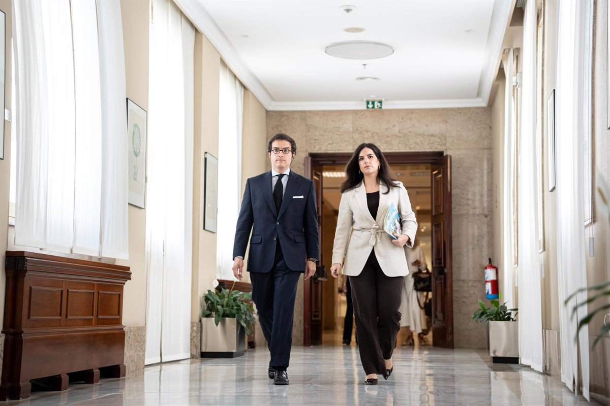 El diputado de VOX José María Figaredo y la portavoz de VOX en el Congreso, Pepa Millán, a su llegada a una reunión de la Junta de Portavoces, en el Congreso de los Diputados, a 13 de mayo de 2025, en Madrid (España). - Gabriel Luengas - Europa Press