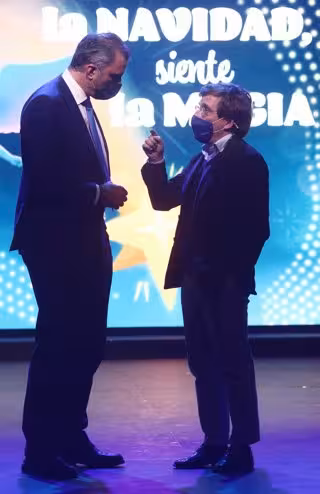 El portavoz de Vox en el Ayuntamiento de Madrid, Javier Ortega Smith (i) habla con el alcalde de la capital, Jose Luis Martínez-Almeida - Eduardo Parra - Europa Press