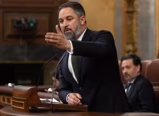 El líder de VOX, Santiago Abascal, interviene durante un pleno en el Congreso de los Diputados. - Eduardo Parra - Europa Press