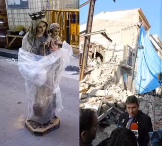 A última hora de este domingo pudo ser recuperada en la vivienda siniestrada una escultura de más de un metro de altura de la Virgen del Carmen, que estaba en una pequeña capilla particular que había en la primera planta, y que quedó en pie pese al derrumbe.