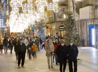 Archivo - Transeúntes pasean bajo las luces navideñas, llevando mascarilla, en Vigo, Galicia (España), a 25 de diciembre de 2020. Vigo está cerrada perimetralmente, pero abierta entre el 23 y 25 de diciembre para permitir encuentros familiares. - Marta Vázquez Rodríguez - Europa Press - Archivo