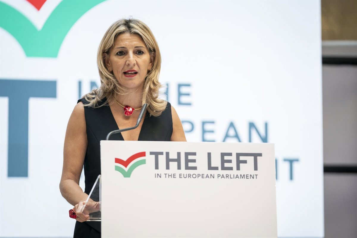 La líder de Sumar, Yolanda Díaz, ha reivindicado este viernes la Europa que clama contra el "apartheid" de Israel a la población palestina y ha incidido en la "condena de la violencia contra la población civil, venga de donde venga".