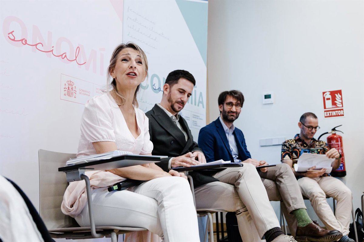 La vicepresidenta segunda y ministra de Trabajo y Economía Social, Yolanda Díaz (i), interviene en el Encuentro de cooperativas energéticas, en el Ateneo de Madrid, a 17 de julio de 2025, en Madrid (España). - Carlos Luján - Europa Press