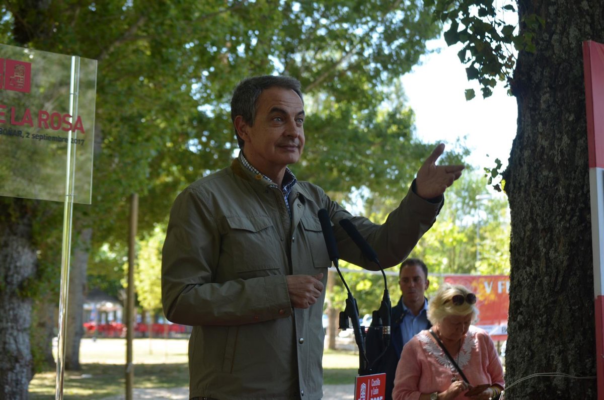 El expresidente del Gobierno ha participado en la Fiesta de la Rosa en Boñar (León) junto a la vicesecretaria general del PSOE, Adriana Lastra.