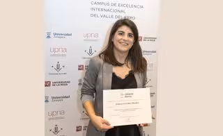 La tudelana Andrea González Morales, doctora en Ciencias de la Salud por la Universidad Pública de Navarra (UPNA), ganadora de la edición 2019 del concurso 'Tesis en 3 minutos'. - UPNA