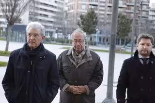 El ex gerente del Club de Fútbol Osasuna, Ángel Vizcay (centro), a su llegada al Palacio de Justicia de Pamplona, donde comienza el juicio por supuestos amaños de partidos en la temporada 2013-2014, en Pamplona /Navarra, a 20 de enero de 2020. - David Domench - Europa Press - Archivo