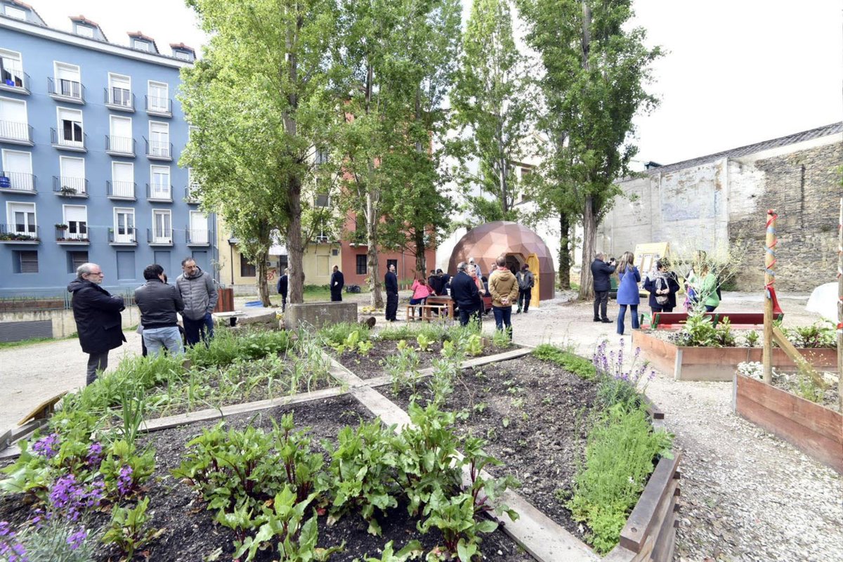 Este jueves se ha dado por abierto el 'domo' del Rincón de las Pellejerías, una infraestructura semiesférica de madera, de 19 m2 útiles, que se ubica al fondo de la huerta urbana. Ese espacio poliédrico, elemento constructivo singular en la ciudad, "quiere ser una zona de encuentro a cubierto que sirva, bien para realizar actividades vinculadas a los espacios de cultivo que gestiona la asociación La Piparrika, o bien para propuestas del barrio, ya que, como el resto de la huerta, será de acceso libre".