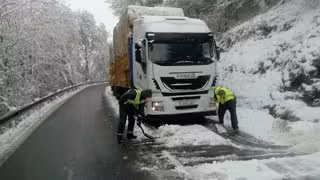 Según ha informado la Guardia Civil, un turismo y un camión han perdido el control en incidentes separados pero muy cerca el uno del otro, en una vía afectada por la presencia de nieve.