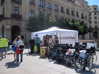 La Asociación Coordinadora de Personas con Discapacidad Física de Navarra ACODIFNA ha invitado este sábado a los ciudadanos a realizar en silla de ruedas unos circuitos por varias calles de Pamplona, con el objetivo de sensibilizar a la sociedad en torno a la accesibilidad universal.