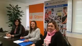 El acuerdo ha sido suscrito por Pilar Irigoien, consejera delegada de CEIN; Ana Díez Fontana, directora territorial de CaixaBank en Navarra, e Inés García, directora de Fundación Secretariado Gitano en la Comunidad foral.
