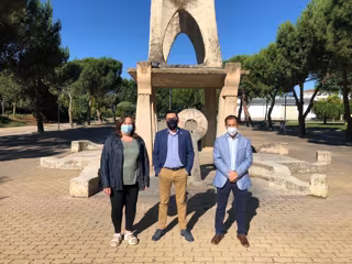 De izq a dcha.: la concejala Pilar Orduña, el director general de Administración Local y Despoblación, Jesús María Rodríguez, y el alcalde de Peralta, Juan Carlos Castillo, en el parque de las Mujeres - GOBIERNO DE NAVARRA