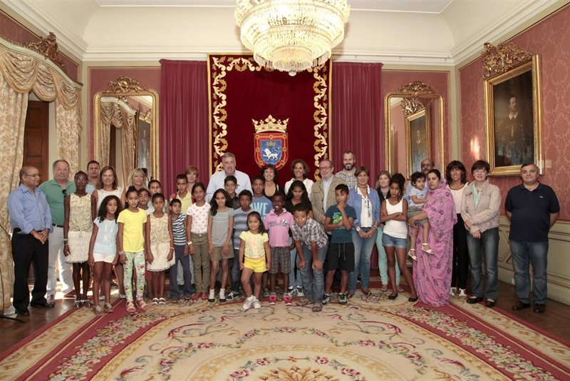 El alcalde de Pamplona, Joseba Asirón, ha recibido este mediodía en la Casa Consistorial a una veintena de niños saharauis y a las familias que los acogen este verano en Pamplona y Comarca dentro del programa 'Vacaciones en paz'.