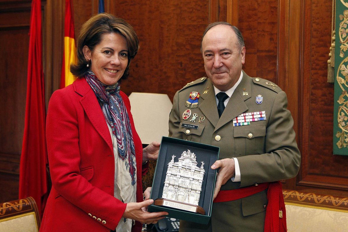 La alcaldesa de Pamplona, Yolanda Barcina, ha recibido en su despacho de la Casa Consistorial al comandante militar de Navarra, Jesús Joaquín Val Catalán. Ha sido una visita de cortesía y de despedida, ya que el general Val Catalán cesará en su cargo en los próximo días, después de tres años al frente de las Fuerzas Armadas en la Comunidad foral.