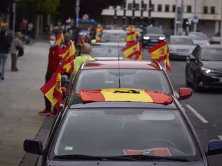 Alrededor de 250 vehículos, según la Delegación del Gobierno en Navarra, han participado este sábado en Pamplona en la manifestación convocada por Vox a nivel nacional para pedir la dimisión del Ejecutivo central por su gestión de la pandemia del Coronavirus.