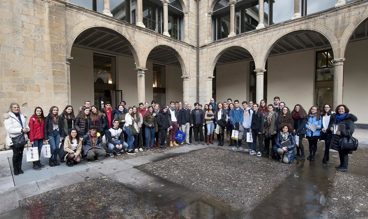 Los co-participantes en el proyecto, un total de 19 alumnos y 12 profesores, se quedarán en Pamplona hasta el viernes, por lo que se han organizado numerosas actividades, entre ellas la visita de hoy al Departamento de Educación. Al ser un programa de movilidad, el alumnado y profesorado de Padre Moret-Irubide también tendrá la ocasión de viajar a esos países para poner en común el material elaborado en torno al tema del proyecto.