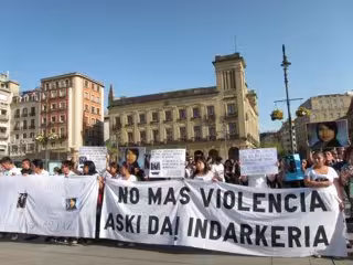 Los asistentes a la convocatoria, que ha dado comienzo a las 18 horas, se han concentrado en silencio tras las pancartas 'No más violencia. Aski da! Indarkeria' y 'Pedimos justicia'. La familia, que había convocado el acto junto a varias organizaciones sociales, no ha podido, finalmente, asistir al mismo.