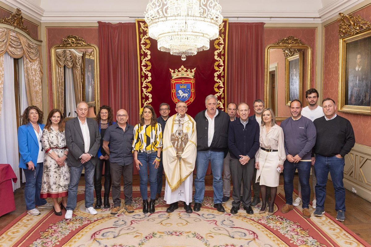 El Ayuntamiento de Pamplona ha recibido este martes la visita de la imagen del Ángel de Aralar, en un acto en el que han participado el alcalde, Joseba Asiron, y miembros de la Corporación municipal.