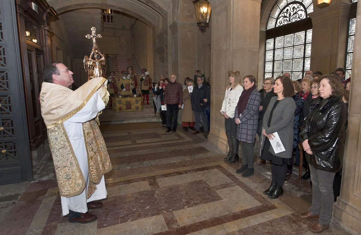 Tras el recibimiento, se han desplazado hasta la capilla del Palacio, dónde el párroco de San Nicolás, Cesar Magaña, ha presidido la eucaristía, acompañado del capellán del santuario de Aralar, Mikel Garciandia, en la que también ha participado el coro de cámara de la Capilla de Música de la Catedral dirigida por Aurelio Sagaseta y con el organista Julián Ayesa.