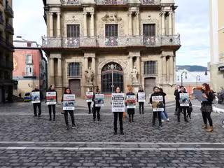 Representantes de AnimaNaturalis se han concentrado este domingo en Pamplona para exigir a los ayuntamientos navarros que dejen de subvencionar festejos taurinos. Según la organización animalista, los consistorios de la Comunidad foral destinan cerca de dos millones de euros anuales a este tipo de celebraciones.