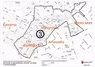 La Junta de Gobierno Local del Ayuntamiento de Pamplona ha aprobado la modificación de la ordenanza reguladora de las zonas de estacionamiento limitado y restringido en los sectores 3 y 5 de manera que se han creado plazas de aparcamiento exclusivas para los vecinos de Milagrosa, identificadas con el color verde, y de larga estancia en el nuevo aparcamiento disuasorio de Etxabakoitz, zona naranja.