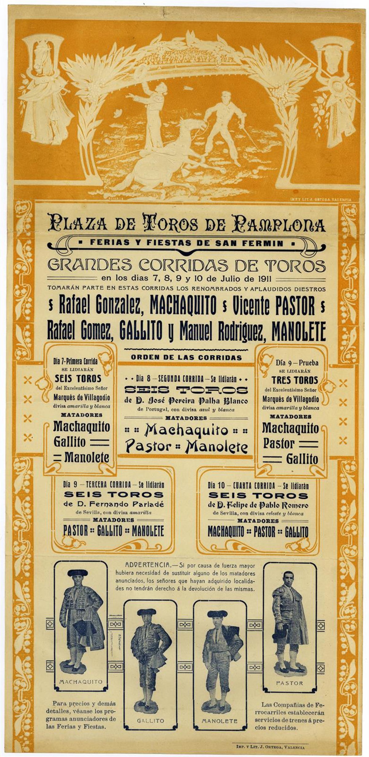 Cartel anunciador del festejo taurino organizado en 1911. - GOBIERNO DE NAVARRA