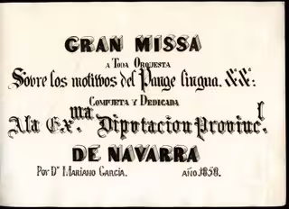De su Gran Missa a toda orquesta sobre los motivos del Pange Lingua, el Archivo Real y General de Navarra conserva tanto la partitura encuadernada como las partes completas para instrumentos y voces, todas ellas manuscritas, que se exponen al público por primera vez en esta microexposición, ha destacado el Gobierno navarro en un comunicado.