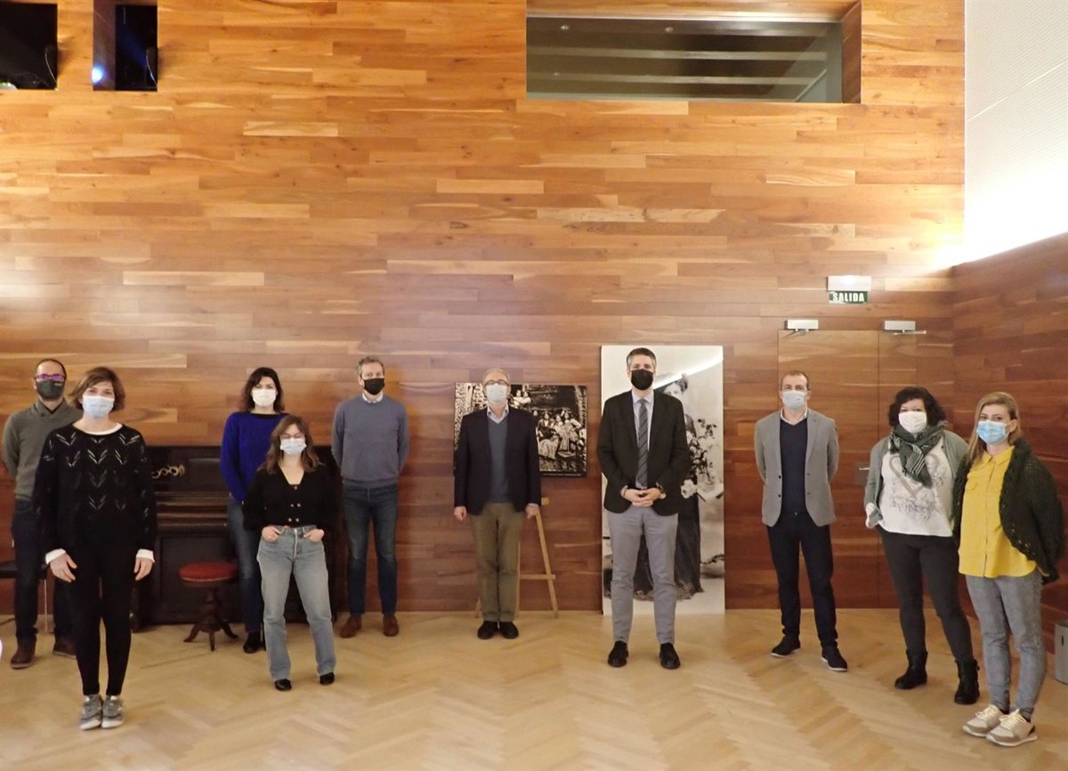 El director general de Cultura - Institución Príncipe de Viana, Ignacio Apezteguía, y el jefe del Archivo Real y General de Navarra, Félix Segura, con representantes del Servicio de Bibliotecas del Gobierno de Navarra, han participado este viernes en el acto de presentación de esta nueva ampliación de fondos documentales e imágenes.