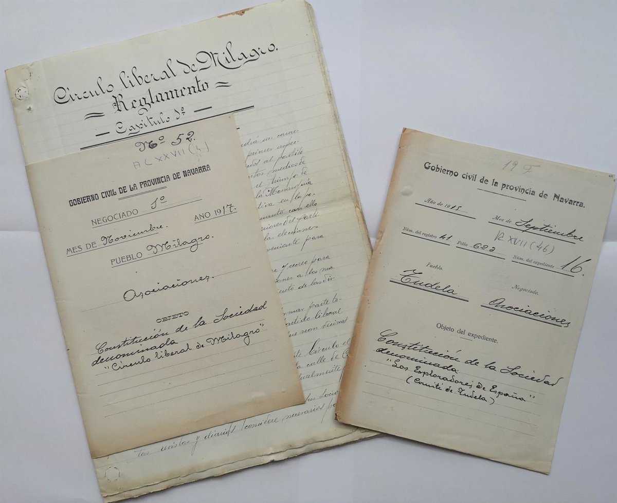 El Archivo de Navarra ha publicado en el buscador web 'Archivo Abierto' los registros descriptivos de 3.093 expedientes de control administrativo de asociaciones del Gobierno Civil de Navarra datados entre 1883 y 1986.