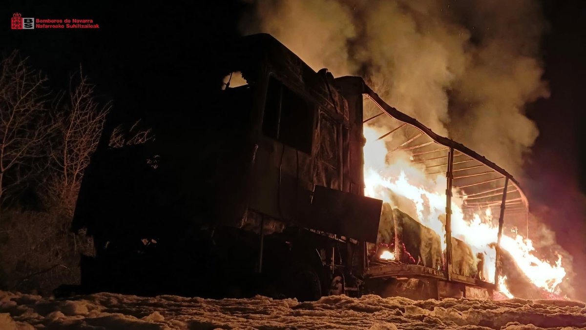 Imagen del camión ardiendo. - BOMBEROS DE NAVARRA