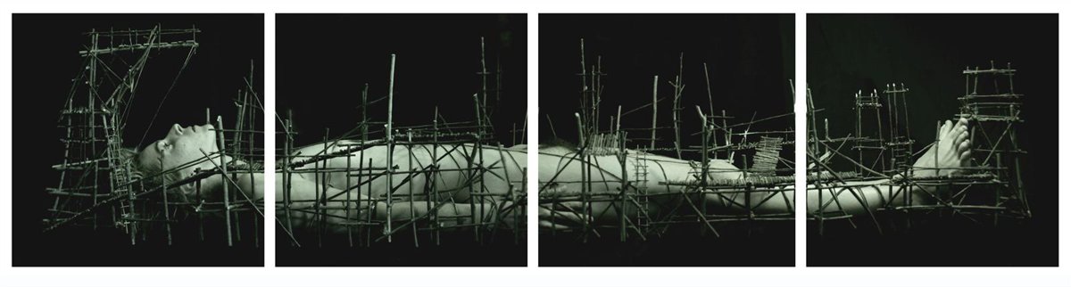 La obra fotográfica 'Gullivers', que formaba parte de ese mismo proyecto, consta de cuatro lonas de 3x3 metros y no pudo ser instalada en el fortín por su complejidad. De esta forma se presenta exhibe el proyecto completo. Pascal Mirande construye en el Horno de la Ciudadela un entramado en el que incluye la figura de una persona, según ha informado el Ayuntamiento de Pamplona en una nota.