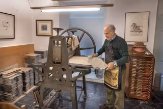 Javier Eslava con el tórculo de estampación. - GOBIERNO DE NAVARRA