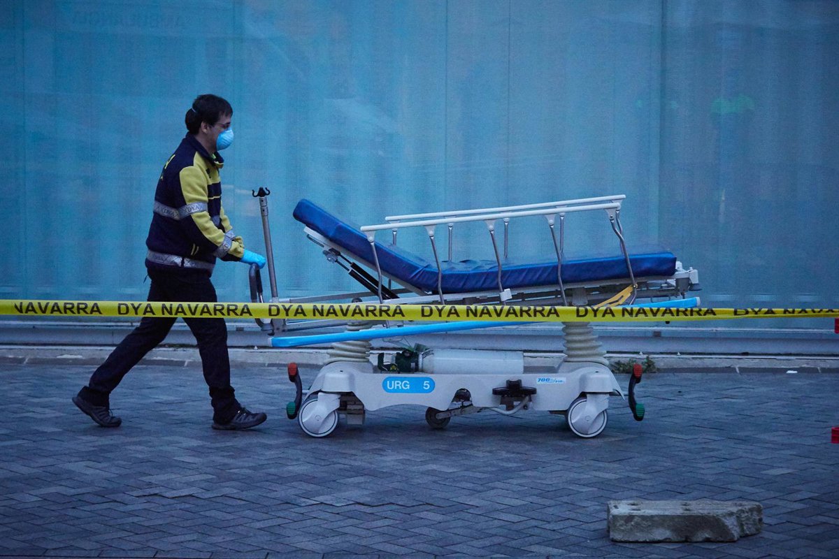 Un voluntario de DYA Navarra, una asociación sin ánimo de lucro que nació para prestar ayuda y auxilio a todas aquellas personas que se encontrasen en situación de riesgo, traslada una de las camillas utilizadas en las ambulancias - Eduardo Sanz - Europa Press
