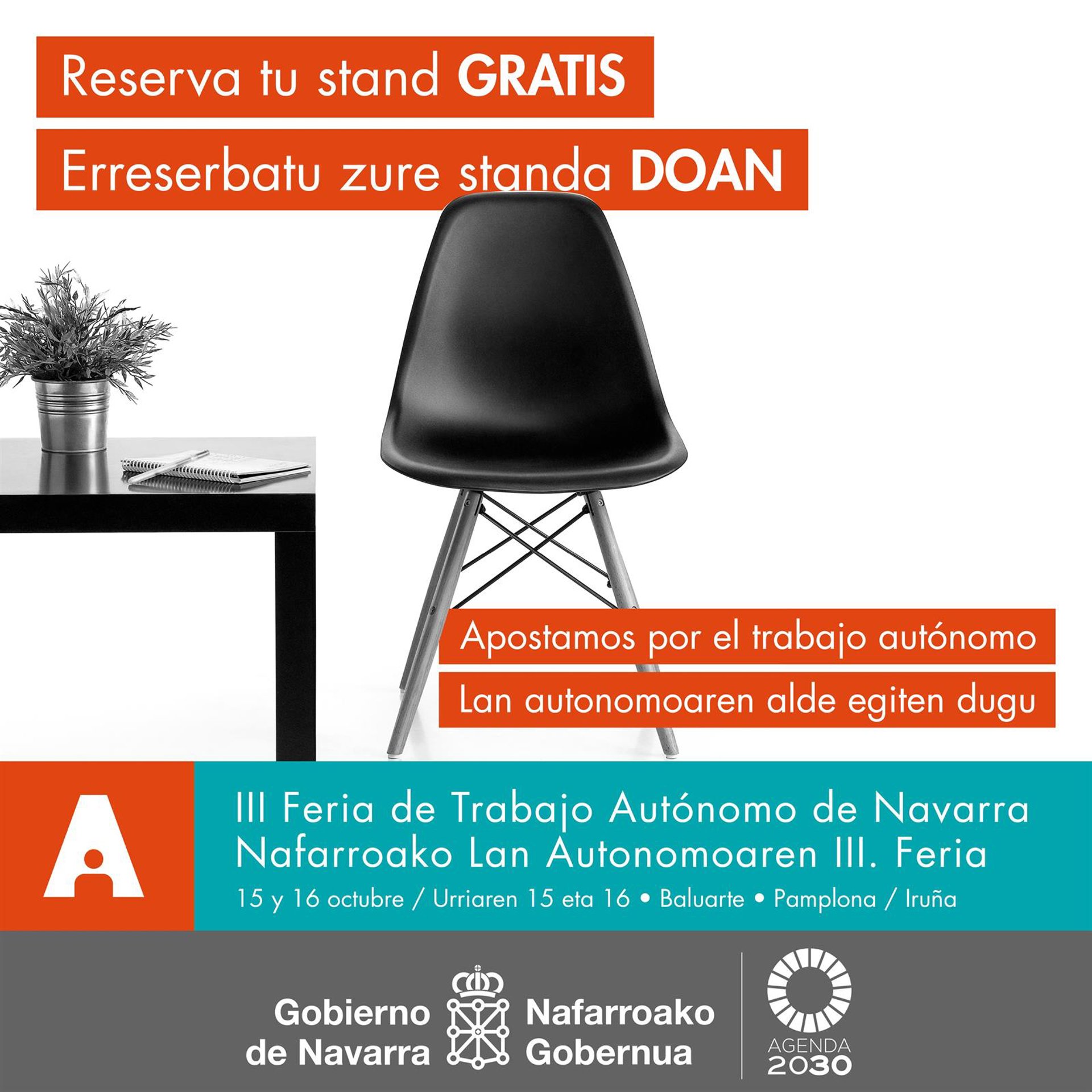 El Gobierno navarro ha lanzado la tercera edición de la Feria de Trabajo Autónomo de Navarra, que tendrá lugar en el Baluarte de Pamplona los días 15 y 16 de octubre de 2022 y en el que podrán participar cualquiera de los casi 47.000 profesionales por cuenta propia que hay en la Comunidad foral. Para ello, los autónomos podrán solicitar un stand gratuito del 4 al 17 de mayo.