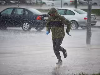 Archivo - Una persona corre durante un temporal en Pamplona - Eduardo Sanz / Europa Press - Archivo