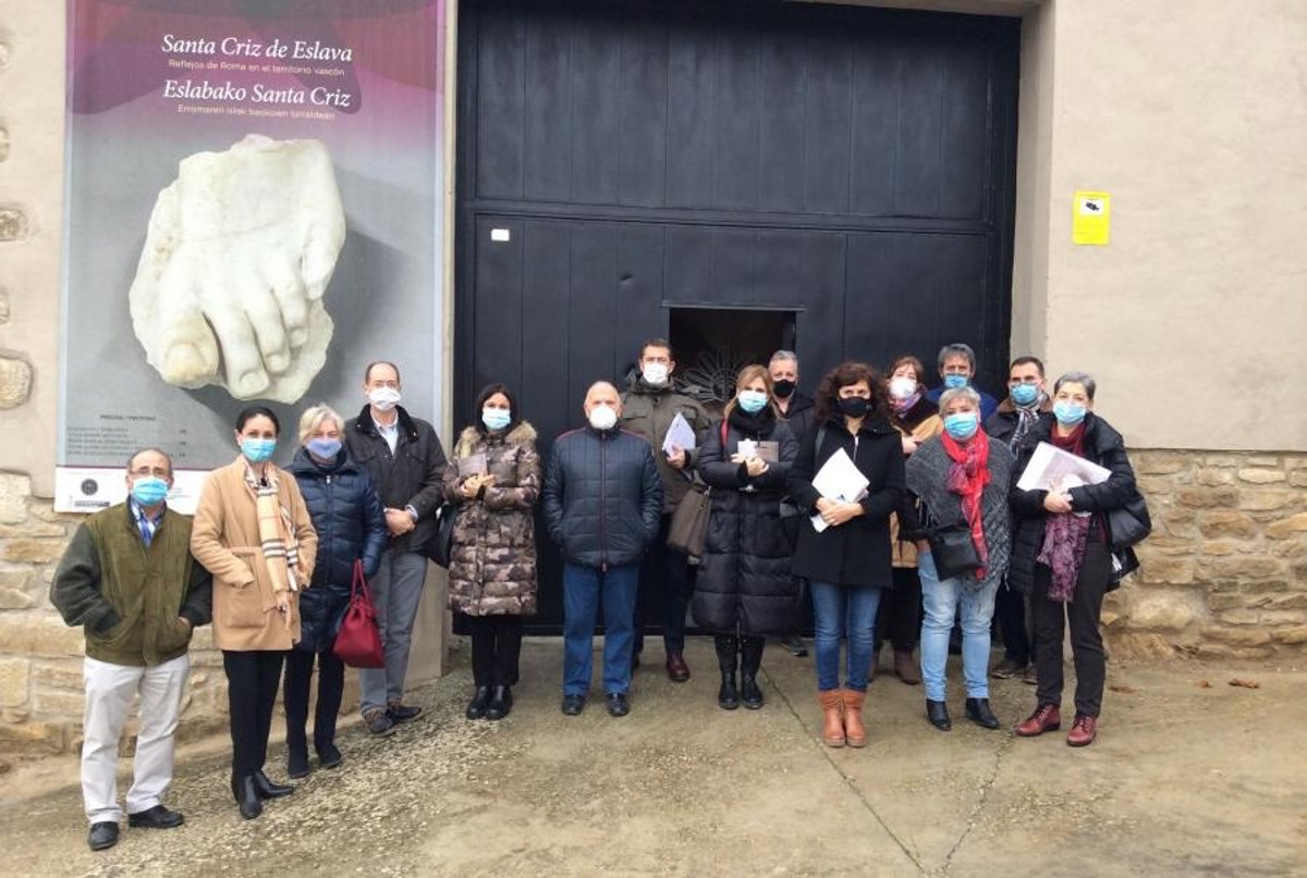 Los parlamentarios han visitado el yacimiento de Santa Criz, un conjunto de restos monumentales procedentes del foro y la necrópolis de la ciudad romana que, descubierta hace justo un siglo en el término municipal de Eslava (Valle de Aibar), floreció entre los siglos I y V sobre la base de un antiguo poblado vascón.