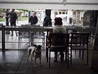 Una mujer sentada en una terraza de Navarra. - Eduardo Sanz - Europa Press