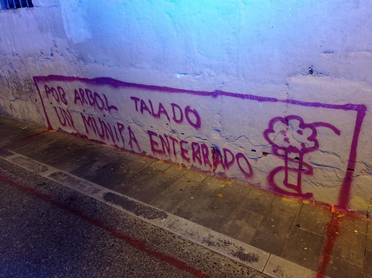La Junta de Portavoces del Ayuntamiento de Pamplona ha aprobado este miércoles una declaración institucional en la que condena la aparición esta semana de una pintada en un muro de la calle Jarauta donde se podía leer 'Por árbol talado, un munipa enterrado'. Los servicios municipales ya han borrado esta pintada.