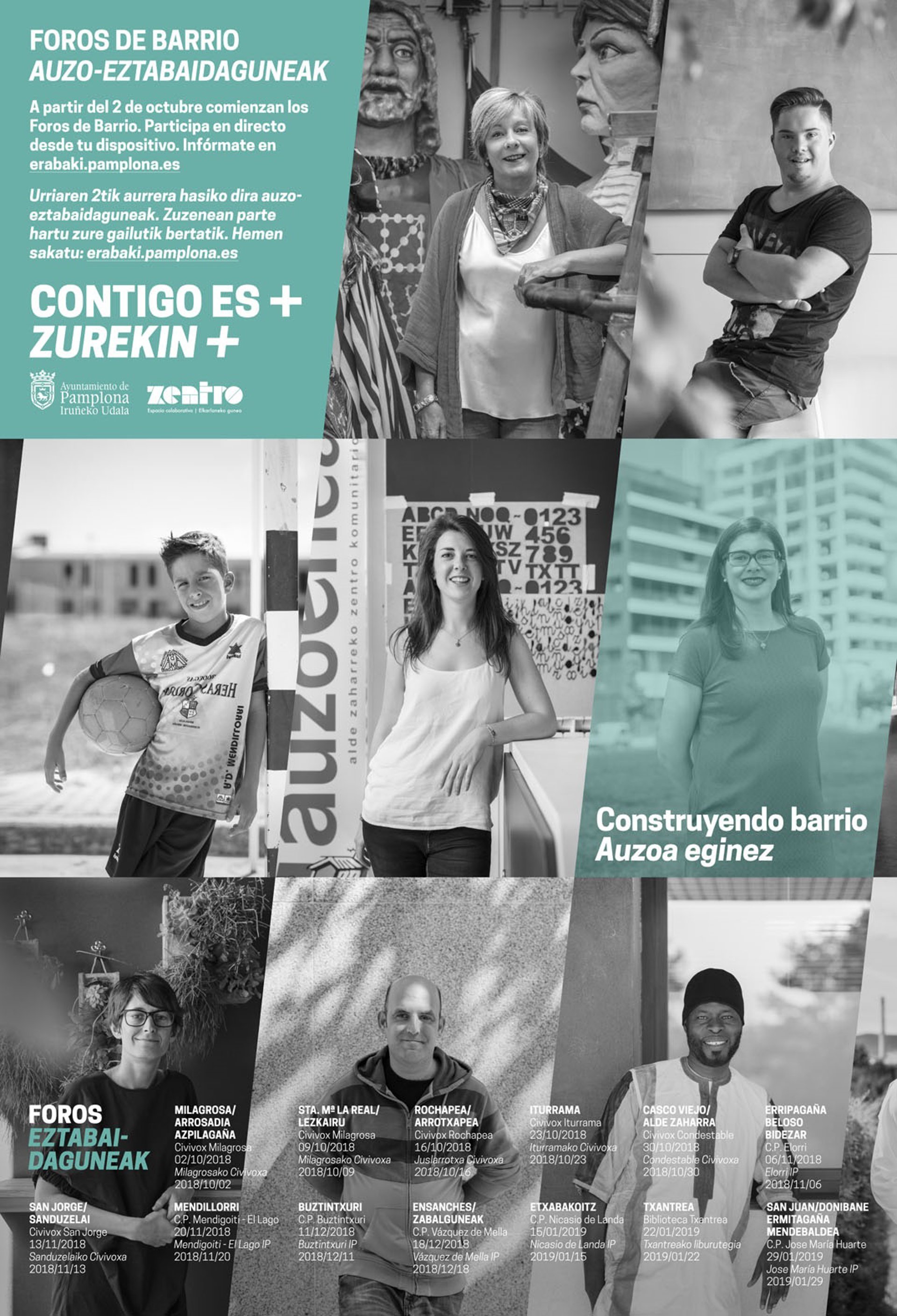 El 23 de octubre los foros de barrio se trasladarán a Iturrama, con una reunión en el civivox, que contará con la presencia de Iñaki Cabasés. El mes se cerrará hablando sobre el Casco Antiguo en Civivox Condestable, con la concejala Itziar Gómez.