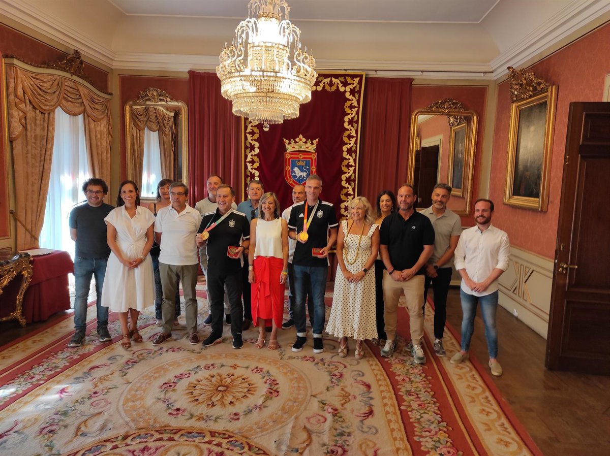La alcaldesa de Pamplona, Cristina Ibarrola, y miembros de la corporación municipal han recibido este miércoles a los navarros que integran, desde el cuerpo técnico y la federación, la selección española de fútbol femenina, que recientemente se ha proclamado campeona del mundo.