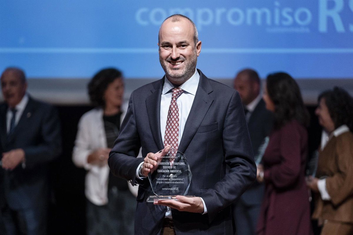El concejal delegado de Proyectos Estratégicos, Movilidad y Sostenibilidad del Ayuntamiento de Pamplona, Fermín Alonso, ha sido el encargado de recoger en el Museo Reina Sofía de Madrid el premio otorgado al Consistorio pamplonés por su programa de educación ambiental destinado a los centros escolares de la ciudad 'Educándonos en Sostenibilidad'.
