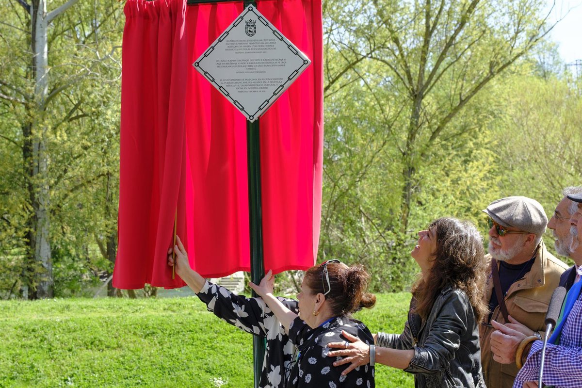 El Ayuntamiento de Pamplona ha querido este miércoles reconocer al pueblo gitano y a su legado histórico, cultural y social colocando dos placas conmemorativas en un poste situado en el entorno de las pasarelas del Arga (playa de Caparroso).