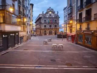 La Plaza Consistorial de Pamplona amanece vacía durante el día 33 del estado de alarma en el país por la crisis del coronavirus donde colectivos esenciales y aquellos que no puedan teletrabajar tienen permitidos los desplazamientos - Eduardo Sanz - Europa Press